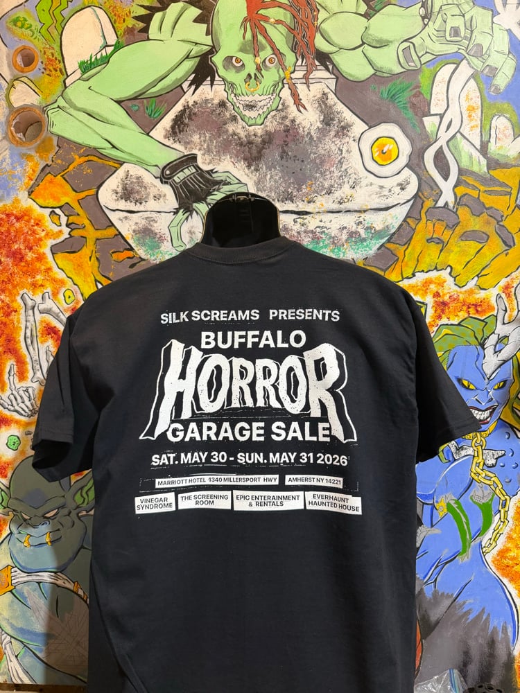 The official Buffalo Horror Garage Sale event shirt. This is going to be open for preorder until May 1st.